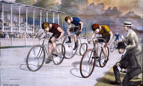 Meanwhile the Ilkeston Bicycle Club went from strength to strength. By 1895 the cycling track had been much improved, with enlargement and a new surface laid down, thus increasing its speed; the radius of the corners had been increased to 52 feet and banked up to double their previous height. The club therefore asked the National Cyclists’ Union if it might stage the ten miles’ championship at the New Manor Ground — this would bring in the best riders from Derbyshire, Nottinghamshire and Leicestershire, and in response the N.C.U. sent over inspectors to examine the track. Their response was exceedingly favourable.