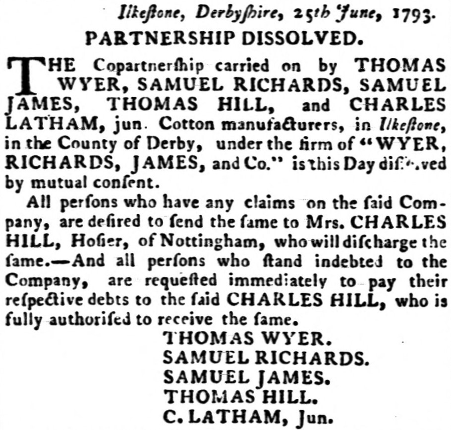 This brief partnership was dissolved in June 1793, though the mill continued to operate.