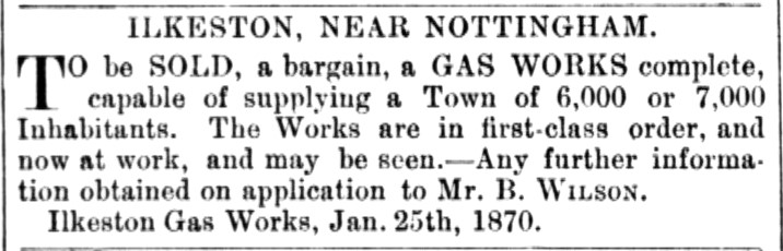 To support its application for the Provisional Order the Company employed Nottingham gas engineer Matthew Hill Loam to examine Ilkeston Gasworks and estimate its value.