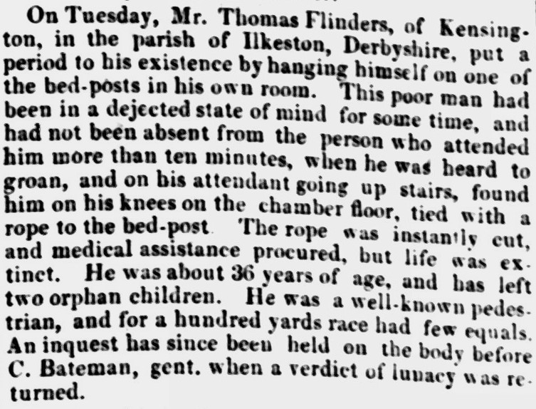 Benjamin Flinders, needlemaker later publican, was the son of lacemaker Thomas and Elizabeth (nee Brentnall) and was another resident who lived for most of his adult life in the Nottingham Road area. His father had married twice and Benjamin was the child from the first marriage. On October 11th, 1812 his father had married Elizabeth Beardsley Brentnall, a daughter of farmer William and Sarah (nee Beardsley), but she had died in Febryuary 1817, just a short time after the birth of Benjamin. Benjamin’s father then married Mary Attenborough on November 11th, 1821, and there were three more children from that marriage, before Mary died in July 1828. Perhaps her death left Thomas depressed, feeling forlorn ? On September 9th, 1828 Thomas committed suicide.
