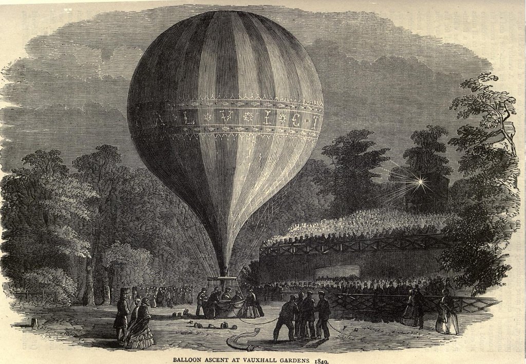 And of course there were fireworks, seen as far as Nottingham and Derby, and a balloon ascent, this time by Professor Wilkes of Birmingham and his Victoria Balloon, a facsimile of the Great Nassau Balloon, its car illuminated by a profusion of coloured lights