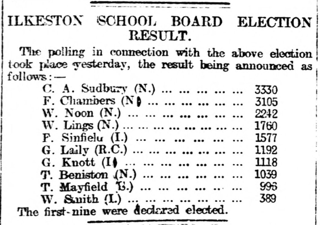 Ilkeston’s ASBO had failed in its primary aim of preventing the establishment of a School Board, but it had secured a majority for its ‘Church’ representatives on the new School Board.