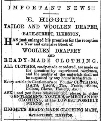 Advert (right) from the Ilkeston Pioneer of November 1860.