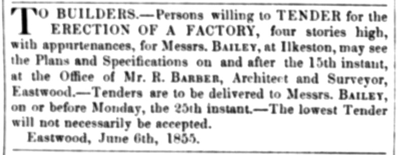 However in January of the following year the Nottinghamshire Guardian was still referring to the firm of “Messrs. Bailey, Son & Co.” who had kindly granted the use of their “new and spacious finishing room” to host the Erewash Valley rifle volunteer ball.