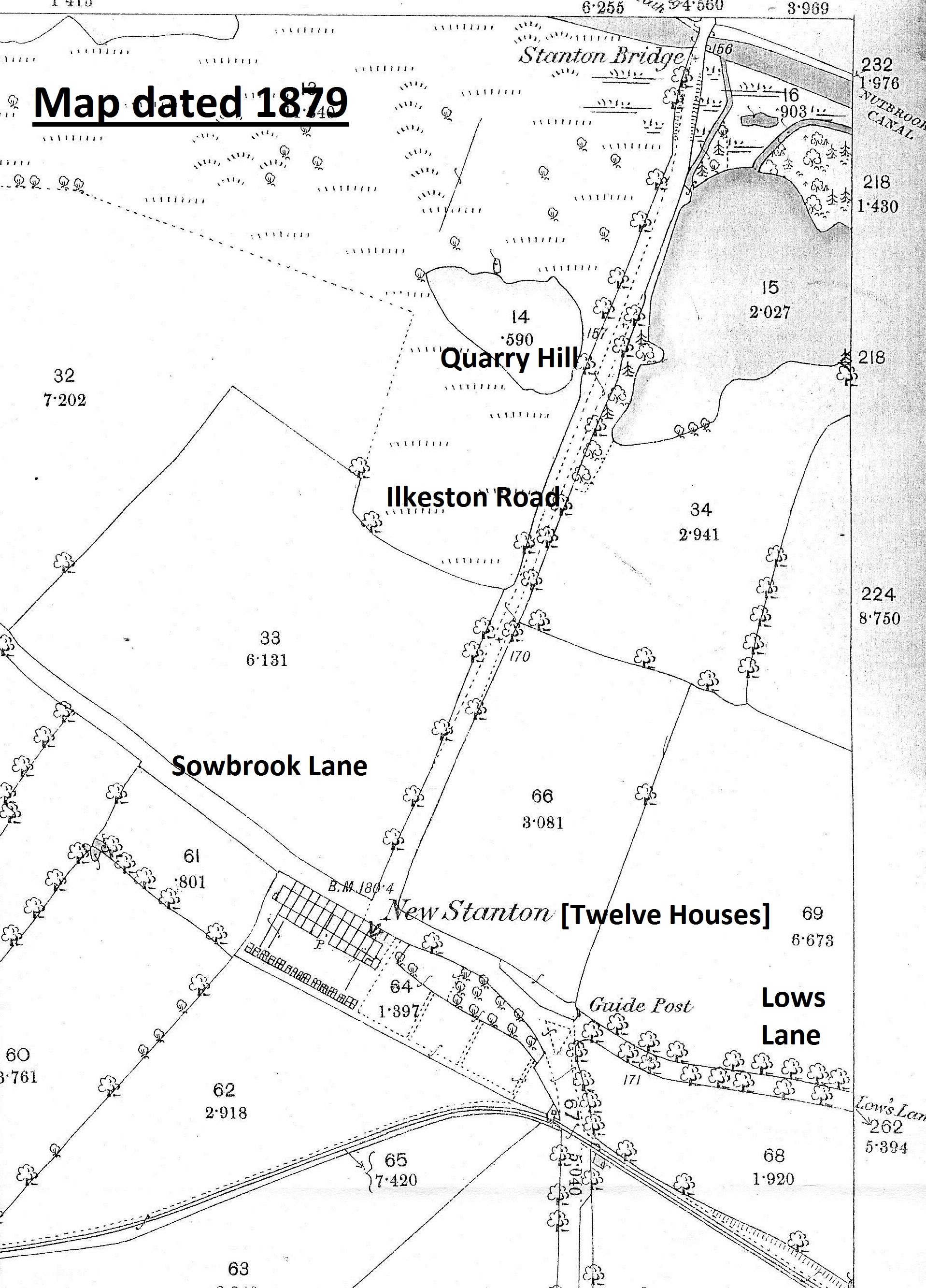 The row of houses referred to as New Stanton on the previous page actually lie on ‘Sowbrook Lane’; which in turn lies directly at the junction with Ilkeston Road/Quarry Hill and Lows Lane. I attach a table of occupants and images of the said houses.