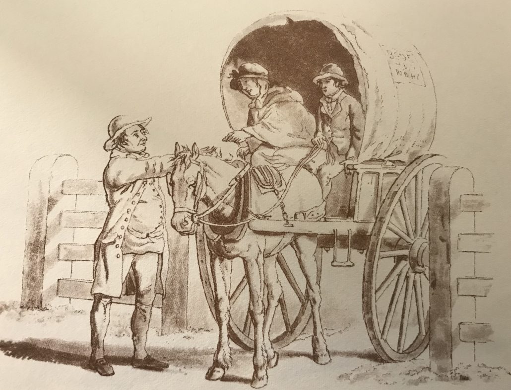 In eighteenth century England many roads were in very poor condition, and sometimes and on certain routes it was quicker to walk to a nearby town than to go by coach.